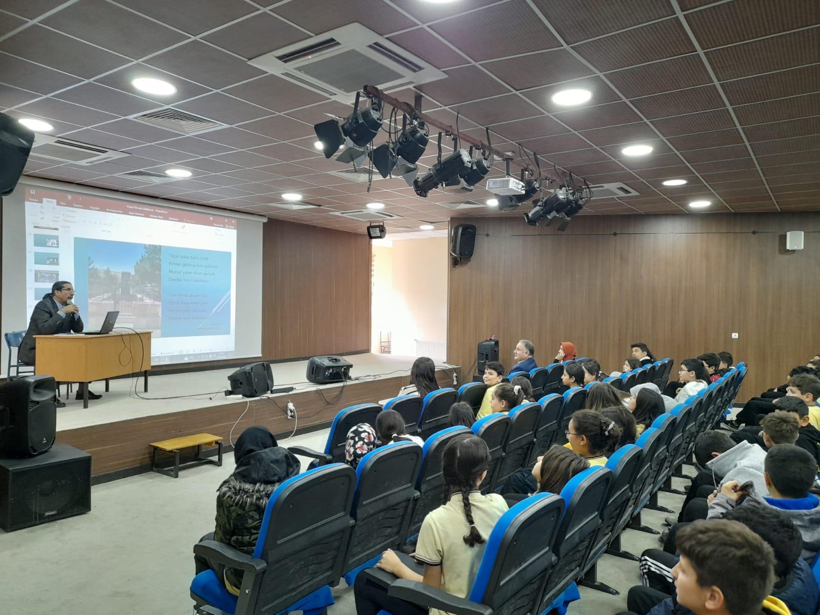 Bölüm başkanımız Prof. Dr. Salahaddin Bekki, 21 Mart 2024 Çarşamba günü Cumhuriyet Ortaokul öğrencileriyle bir araya gelerek Hakk’a yürüyüşünün 51. yıl dönümünde Âşık Veysel Şatıroğlu üzerine bir söyleşi gerçekleştirdi. Moderatörlüğünü Türkçe Öğretmeni Behiye Buse Meriç’in yaptığı programa okul müdürü Hayati Barça başta olmak üzere çok sayıda öğretmen ve öğrenci katıldı. Programda bölümümüz Dr. Öğr. Üyesi Meltem Yılma da hazır bulundu.